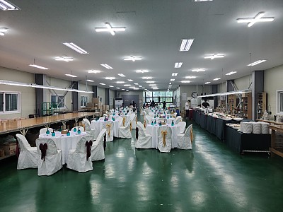 구청송년회 구청식당에서송년회행사현장식당테이블에테이블보지원세팅해드렸습니다