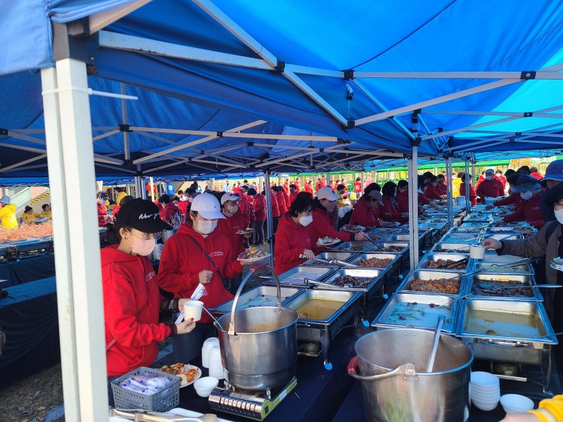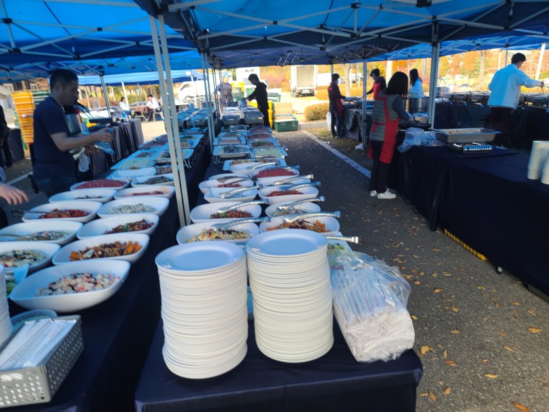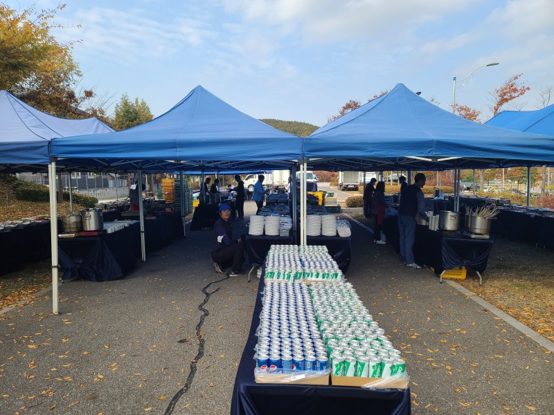 야외에서점심식사800명진행